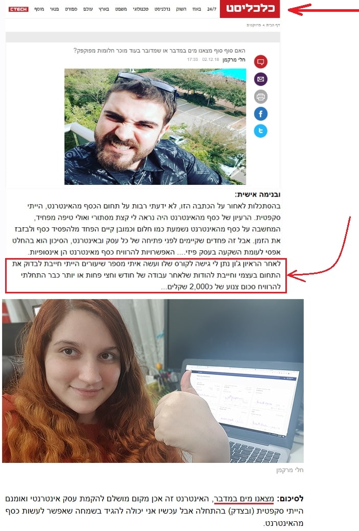 מבחן התוצאה: אלפי תלמידים שלי בארץ ובחו"ל אומרים לי תודה יום אחרי יום על השיטות שלי לעשיית כסף מהאינטרנט, על זה שאני מלמד אך ורק את מה שבאמת עובד ואת מה שאני בעצמי עושה ביום יום מאות אנשים כבר הודו לי על הפריצה שלהם לחופש כלכלי בעזרת הידע והכלים שאני מספק